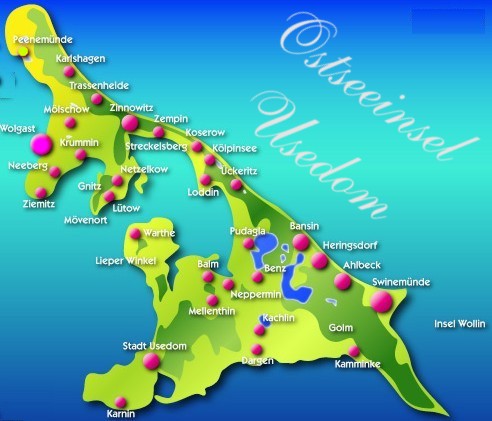 Über der B111bei Wolgast auf die Insel Usedom ca. 4km bis Banneminer Kreuzung,dann links über Trassenheide,Karlshagen nach Peenemünde ca. 12km